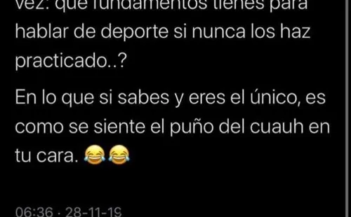 Luego le recordó una vieja pelea con Cuauhtémoc Blanco. “Lo que sí sabes, y en lo que eres único, es en cómo se siente el puño de Cuauh en tu cara”, replicó el chileno, que no se quedó con ese solo comentario.