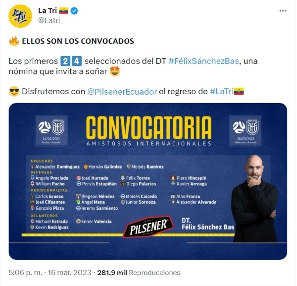Vale recordar que Ecuador se enfrentará a Australia en un doble partido en la próxima Fecha FIFA, en los primeros partidos de Sánchez al mando del equipo.