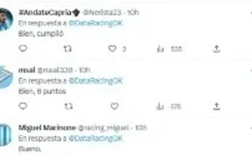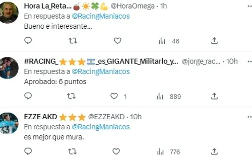 Además, los hinchas de la Academia le dedicaron varios elogios al chileno, respondiendo positivamente al debut de Opazo con la camiseta de Racing.