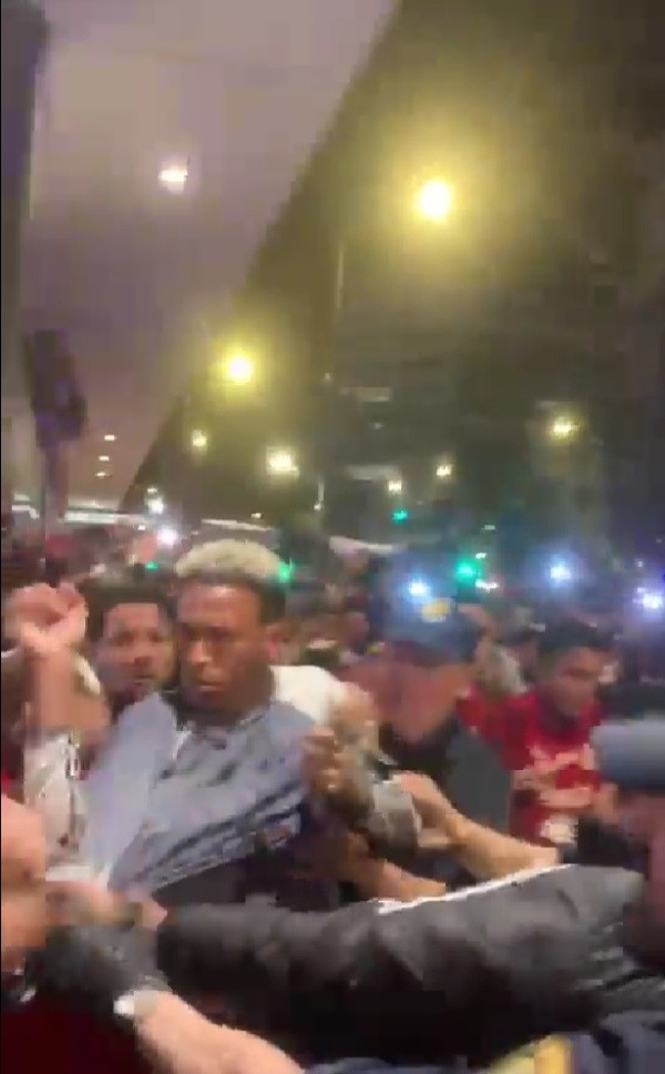 Sin embargo, la situación se descontroló cuando los jugadores bajaron para saludar a su gente y la policía confundió a jugadores e hinchas y aplicaron la fuerza para separar todo.