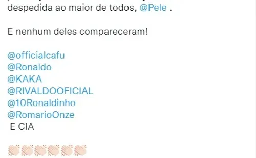 Jugadores de la talla de Ronaldo, Ronaldinho, Romario, Rivaldo, Cafú y Roberto Carlos no se aparecieron ni en pintura en el velorio de O Rei, así como tampoco lo más recientes seleccionados de Brasil.