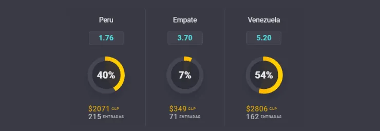 El OSO de Coolbet te cuenta que el favorito para ganar en este partido por las Eliminatorias Sudamericanas al Mundial de Qatar 2022 es Perú, que paga 1,76 veces lo que juegues, por sobre los 5,20 que paga Venezuela si crees que la vinotinto vencerá en Lima. Ahora, si eres de quienes cree que terminará en empate, paga 3,70 veces lo que apuestes.