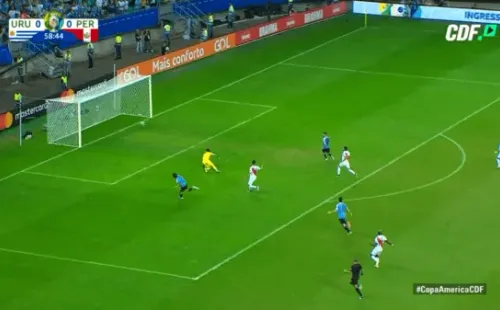El delantero charrúa se fue solo en demanda del arco y derrotó con un picotóna Pedro Gallese, pero su festejo fue congelado cuando ya se le cruzaba Chile por la cabeza.