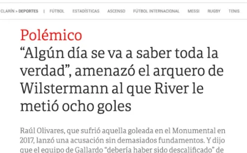 “A River lo tendrían que haber descalificado“, fue parte de las duras declaraciones que tuvo el hoy arquero de Deportes La Serena contra el equipo del Muñeco Gallardo. Y la noticia no solo causó impacto en nuestro país, sino también al otro lado de la cordillera, donde quedaron en llamas con el Araña.
