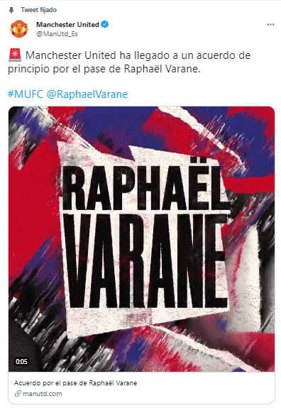 El equipo de Old Trafford lanzó un comunicado oficial expresando su alegría por asegurar esta incorporación. “Se complace en anunciar que el club ha llegado a un acuerdo con el Real Madrid para la transferencia del defensa internacional francés y ganador de la Copa del Mundo, Raphael Varane, sujeto a una revisión médica y a la finalización de las condiciones del jugador”, apuntaron.