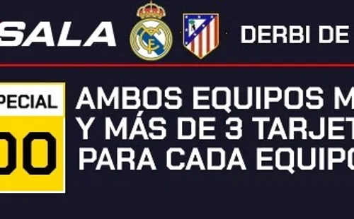 Sin embargo, si eres de quienes busca dar más emoción a este partido, Betsala te cuenta que hay una cuota especial para ti. Si crees que ambos equipos marcan en el Derbi de Madrid, y hay más de tres tarjetas para cada equipo, paga 10.00 veces lo que apuestes.