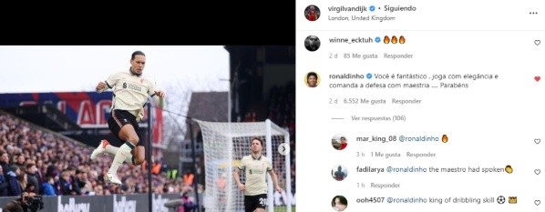 El comentario de Dinho rápidamente se viralizó y ya alcanza más de 6.000 likes, con respuestas como “el maestro ha hablado”, “De leyenda a leyenda” y alguno que otro astuto pidiéndole firmar por Liverpool.