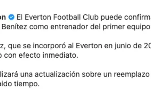 Ahora, los Toffees esperan salvar la categoría y hacerse de buenos refuerzos en el mercado de pases y el puntapié inicial para esta operación es la salida deBenitez.