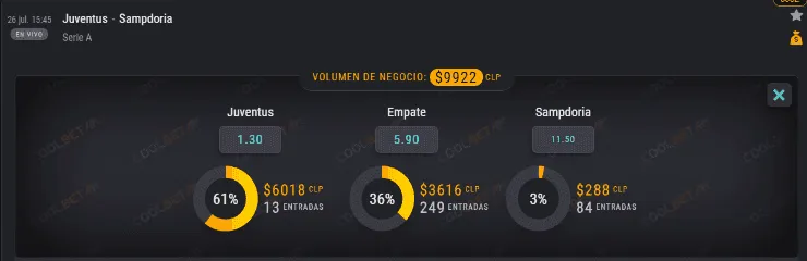 Por eso, el OSO de Coolbet se la juega por este partido y te cuenta que el favorito para ganar es la Juventus, que paga 1,30 veces lo que juegues, en desmedro de los 11,50 de la Sampdoria. Ahora, si te la juegas por el empate, paga 5,90 veces lo que apuestes.