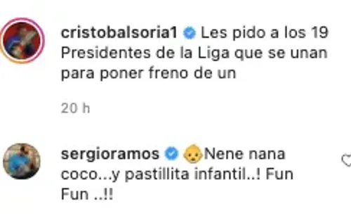 “¡Otra vez lo mismo! Les pido a los 19 Presidentes de la Liga que se unan para poner freno a esto, que es siempre igual“, aseguró a través de su cuenta de Instagram. Pero lo que no se esperaba era una respuesta del propio Ramos.
