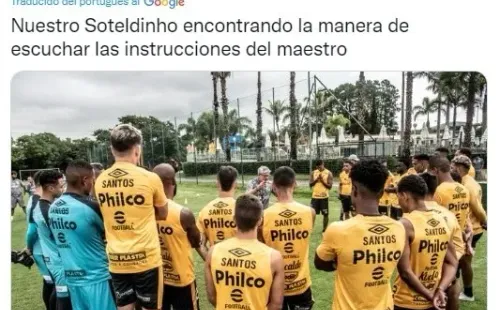“Nuestro Soteldinho encontrando la manera de escuchar las instrucciones del maestro”, publicó el Santos en la red social del pajarito azul, desatando una ola de tiernos comentarios saludando al venezolano.