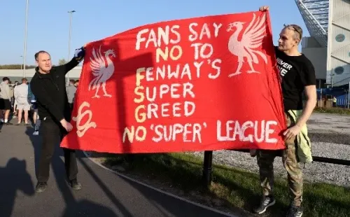 Este lunes, el Leeds United de Marcelo Bielsa enfrenta al Liverpool, uno de los doce clubes fundadores de la Superliga, en Elland Road por Premier League. Es por esto que decenas de hinchas protestaron a las afueras del estadio contra la creación del torneo.