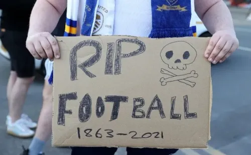 Con pancartas alusivas a la “muerte del fútbol”, los fanáticos hicieron saber su tristeza y desilución por el nuevo torneo. “Amor por el juego de la clase trabajadora, arruinado por la codicia y la corrupción“, dice uno de los lienzos.