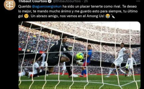 Sergio Agüero recibió el apoyo de todo el planeta fútbol una vez que confirmó su retiro de las canchas. Y uno de los que se sumó fue Thibaut Courtois, arquero del Real Madrid y quien sufriera el último gol que marcó en el profesionalismo.