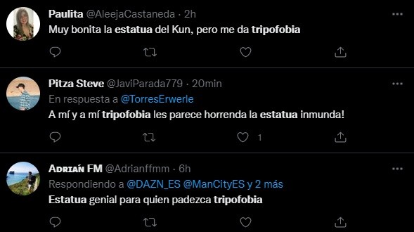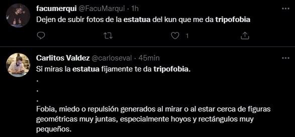 “Dejen de subir fotos de la estatua del Kun que me da tripofobia”, “si miras la estatua fijamente te da tripofobia” y “gran estatua para los que sufrimos tripofobia” fueron algunos de los comentarios en Twitter.