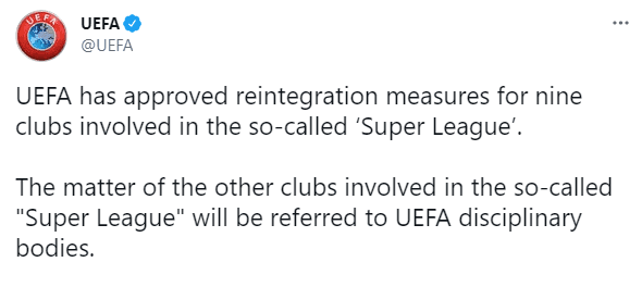 La Superliga recibió su estocada final que parece la definitiva luego que la UEFA anunciara un acuerdo con nueve de los 12 equipos rebeldes que apoyaron esta iniciativa. El ente europeo impuso sanciones millonarias pero moderadas a los clubes, según información oficializada por la propia asociación.