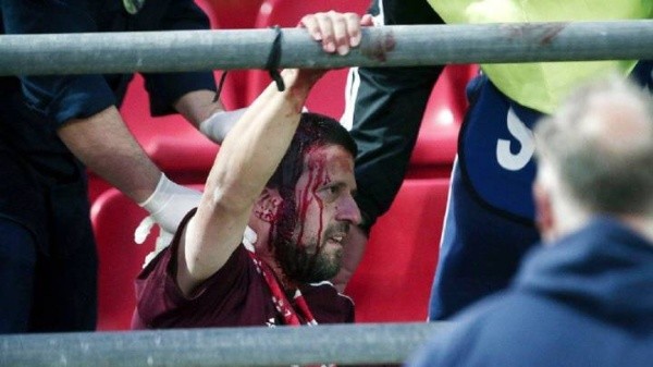 En los 84 minutos comenzaron a generarse los incidentes, cuando el Olympiacos caía por 0-4. Encapuchados con bates y palos fueron a buscar a los hinchas alemanes mientras algunos trataban de escapar ingresando al terreno de juego.