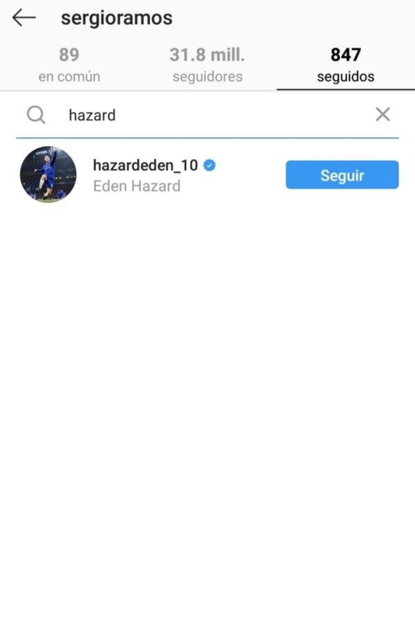 El fichaje de Eden Hazard por Real Madrid es un hecho y Sergio Ramos ya le dio el visto bueno al belga. El capitán de los merengues comenzó a seguir por Instagram al goleador del Chelsea, el mismo día que se confirmó que tras la Europa League se oficializaráel fichaje del atacante.