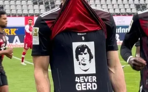 Como era de esperarse, el partido se detuvo tras el gol por varios minutos, donde el polaco levantó su camiseta del Bayern para revelar una polera negra con la cara de Muller estampada y la leyenda “4EVER GERD” (por siempre Gerd), homenajeando al extraordinario artillero cuya marca fue empatada este sábado.