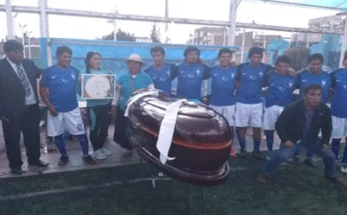 Al menos hay que reconocerles que desdramatizan la muerte. Pero lo que reseña hoy Trome sorprende. Un torneo de futbol siete en la localidad peruana de Juliaca, en Puno,dio como premio principal, además de medallas y dinero, un ataúd.