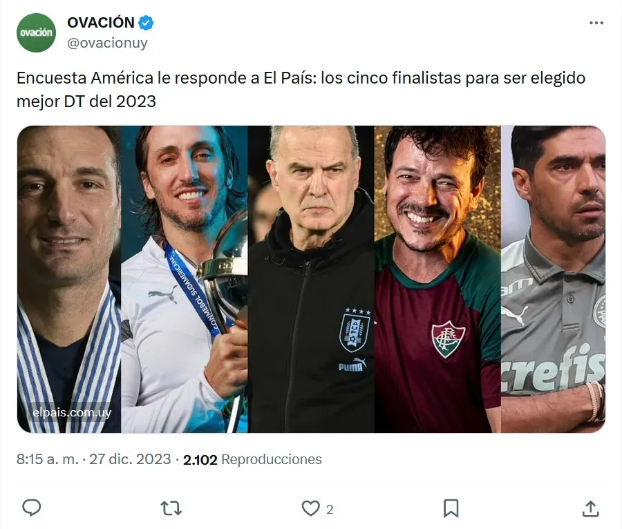 Tanto fue el mérito que el Loco consiguió con la Celeste, que el diario oriental El País decidió nominar al rosarino como uno de los cinco candidatos para ser el Mejor Entrenador de América, en la entrega de premios que se realizará el próximo lunes 1 de enero.