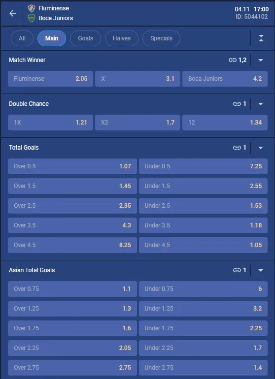 Ahora, si eres de quienes piensa que Fluminense se quedará con la Copa Libertadores ante Boca Juniors en el Maracaná de Río de Janeiro, Boomerang Sportsbook paga 2,05 veces lo que juegues de cara a este partido.