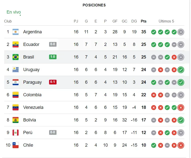 Por su parte, Paraguay quedó con 24 unidades, por lo que, es casi seguro que esté en el torneo, pero le falta, al menos, una unidad para clasificar oficialmente.¿
