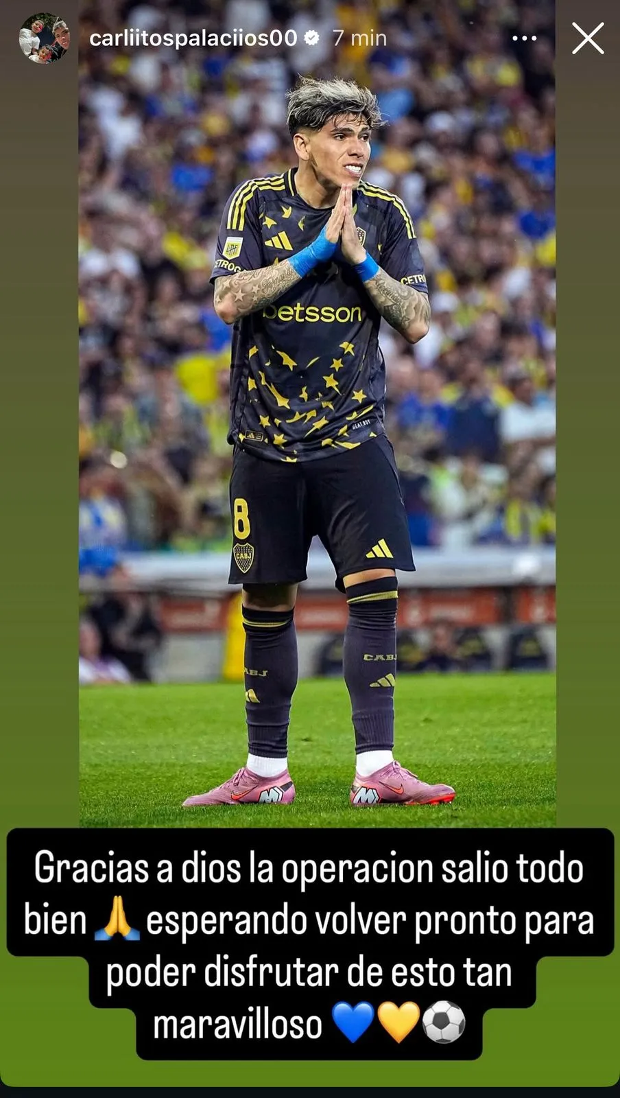 Carlos Palacios rompió el silencio en Boca Juniors, una vez que finalizó la operación en su rodilla derecha, de manera de cortar su problema de sinovitis que lo afecta.