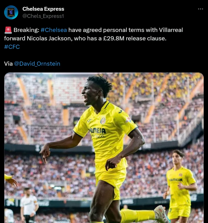 Por cierto, Chelsea negocia también con el Arsenal para traspasar al alemán Kai Havertz. Por eso mismo, el fichaje de un atacante se hace perentorio. Y en ese contexto, uno de los apuntados es Nicolas Jackson. El seleccionado de Senegal tiene ascendencia gambiana y llegó al Villarreal desde el Mirandés.