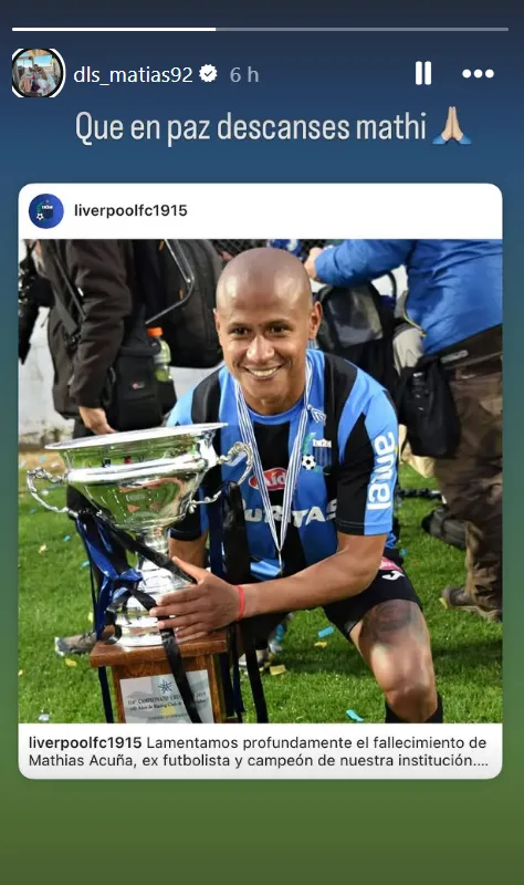 Además del chileno Gonzalo Reyes hubo un ex defensor de Colo Colo que también lamentó el fallecimiento de Mathías Acuña. Se trata de un experimentado jugador que tras su paso por el Cacique recaló en Liverpool de Uruguay.