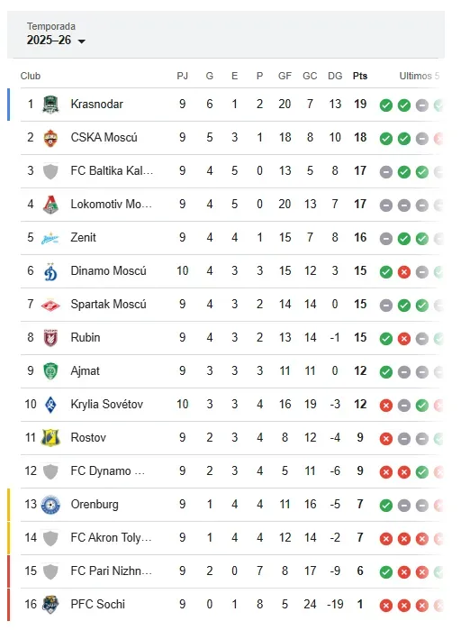 Resultado que deja al cuadro del chileno en la décima posición de la Premier League rusa con 12 puntos, apenas cinco unidades sobre la zona de promoción donde la ocupa otro nacional: Jordhy Thompson y el Orenburg.