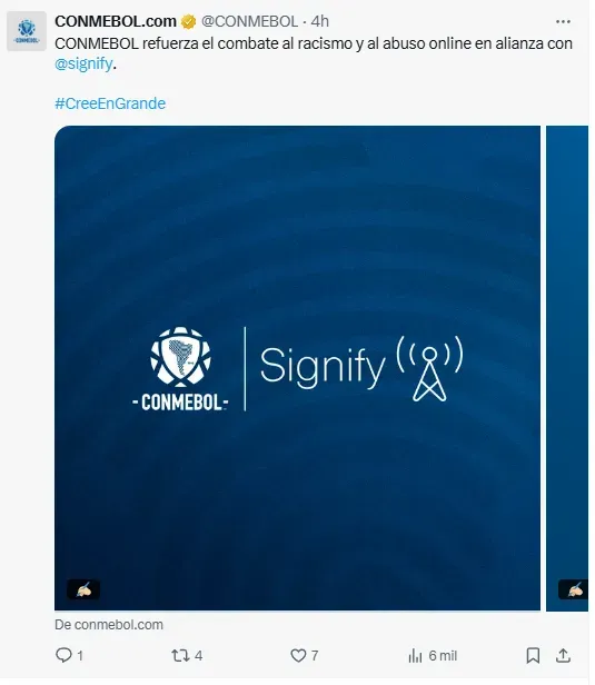 En esa línea, el ente rector del balompié sudamericano anunció el lanzamiento de un sistema de protección online que va en el combate del racismo y el abuso en las redes sociales.