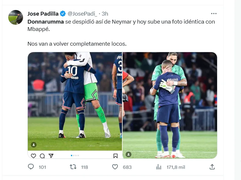Pero el protagonismo de Donnarumma no quedó ahí. Más tarde el portero elevó la confusión de los hinchas parisinos subiendo una foto con Mbappé a su Instagram. Una publicación muy parecida a la que realizó para despedirse de Neymar en su salida a Arabia Saudita.