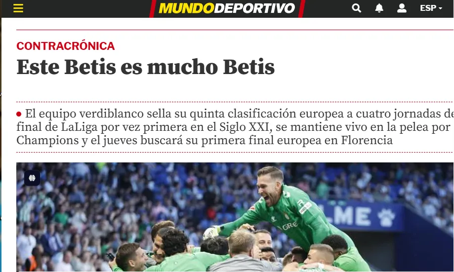 Mundo Deportivo, por otro lado, habla que “este Betis es mucho Betis”, destacando su quinta clasificación europea, y la lucha por llegar a la Champions League. “El Real Betis logró este domingo en Cornellà una remontada que pasará a los anales de su historia por la calidad suprema de los goles con que Lo Celso y Antony acabaron con la resistencia de ese valladar que es Joan Garcia, sin lugar a dudas el mejor portero del fútbol español”, detallaron.