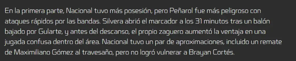 Finalmente, El Espectador Deportes destacó como gran hito del primer tiempo la salvada con las uñas de parte del exportero de Colo Colo. “No logró vulnerar a Brayan Cortés”, comentó la emisora charrúa.