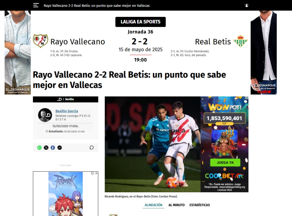 La prensa española reaccionó al resultado, destacando las implicancias en la tabla de posiciones, como en las aspiraciones del chileno. El Desmarque, por ejemplo, tituló como “un punto que sabe mejor en Vallecas”, y que “la clasificación para la Champions de los verdiblancos sí se ha quedado prácticamente sentenciada”