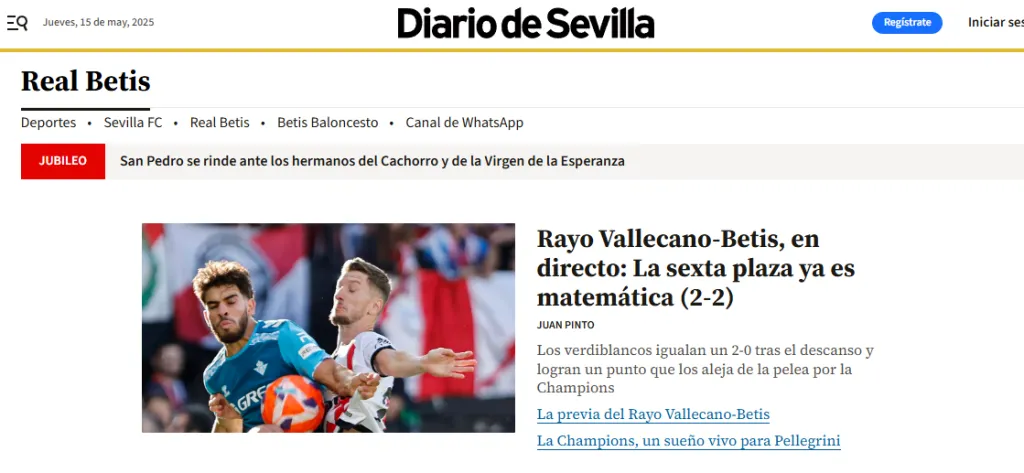 El Diario de Sevilla, en tanto, señalaron que “la sexta plaza ya es matemática”. “Un empate que permite a los de Pellegrini certificar la sexta plaza, después de tener ya amarrada la plaza para la Europa League“, cerraron.