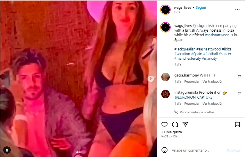 Grealish aprovechó sus vacaciones y primero se fue a Las Vegas, donde lo pillaron de lo más contento con una chica que no es su pareja, Sasha Attwood, en un club nocturno.