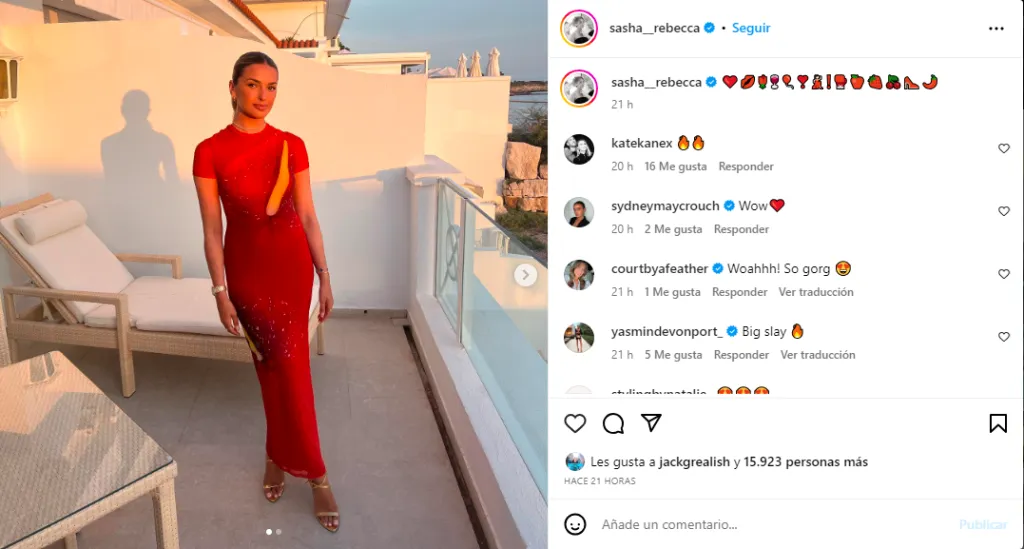La joven influencer compartió dos fotografías de ella luciendo un bello vestido rojo, y la publicación la hizo llenarse de elogios. Es más, hasta Jack Grealish le dejó su like desde el carrete mismo.