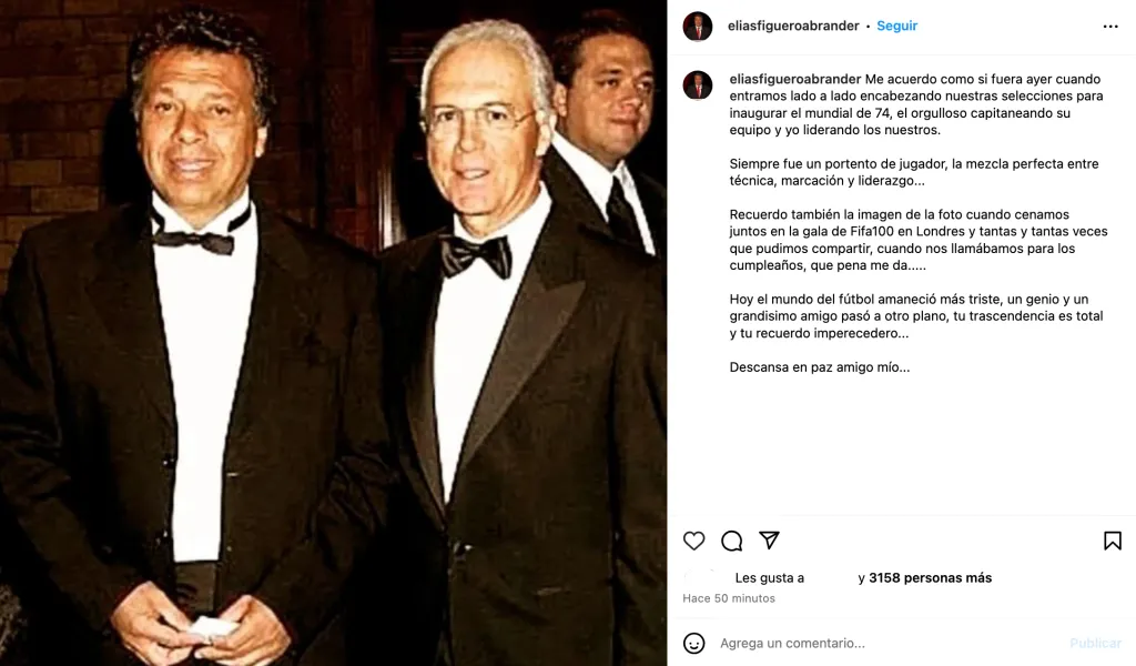 El fallecimiento del Kaiser fue el domingo 7 de enero, pero se confirmó este lunes 8. “Hoy el mundo del fútbol amaneció más triste, un genio y un grandisimo amigo pasó a otro plano, tu trascendencia es total y tu recuerdo imperecedero. Descansa en paz amigo mío”, sentenció Figueroa.