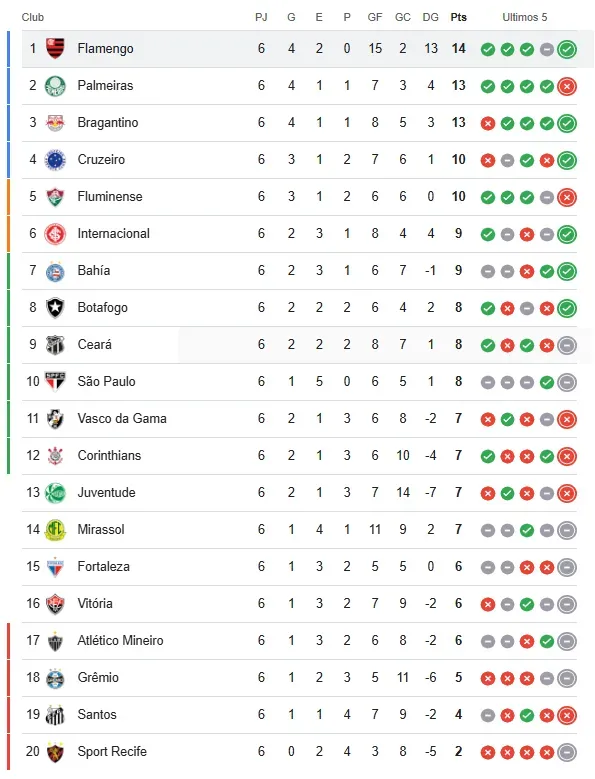 Revisa la tabla de posiciones del Brasileirao con Flamengo