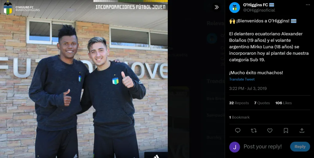 Luego de su estadía en Colo Colo, Alexander Bolaños jugó en el equipo de proyección de O’Higgins de Rancagua, aunque no llegó a debutar con el Capo de Provincia. Y en 2022, defendió la camiseta de Deportes Concepción en la Segunda División. Con el León de Collao, el ecuatoriano celebró tres goles en 14 cotejos.