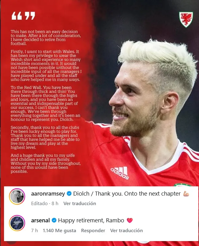 Aaron Ramsey anuncia su retiro