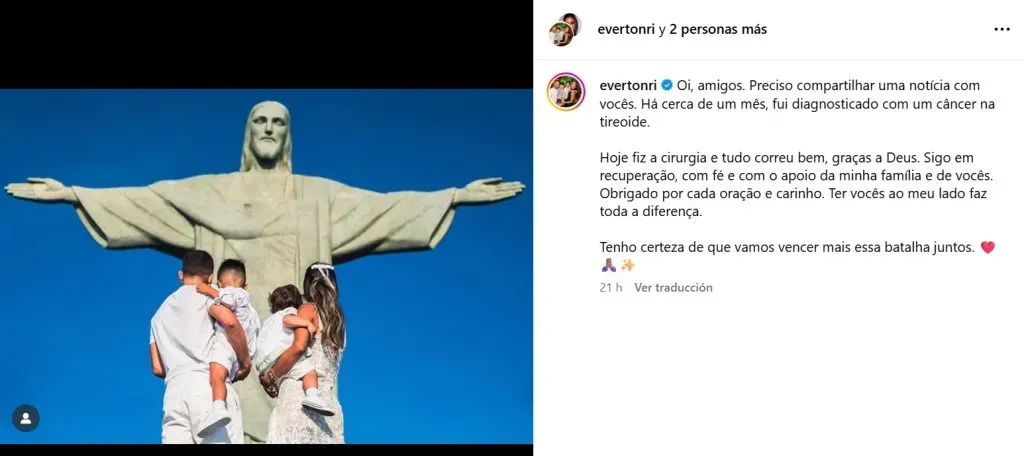 El jugador de 36 años, que fue campeón de la Copa Libertadores con el Flamengo en las ediciones 2019 y 2022, reveló en sus redes que la cirugía fue un éxito. “Hola amigos. Necesito compartirles una noticia. Hace casi un mes fui diagnosticado con un cáncer de tiroides. Hoy me operaron y todo salió bien, gracias a Dios”, señaló de entrada.