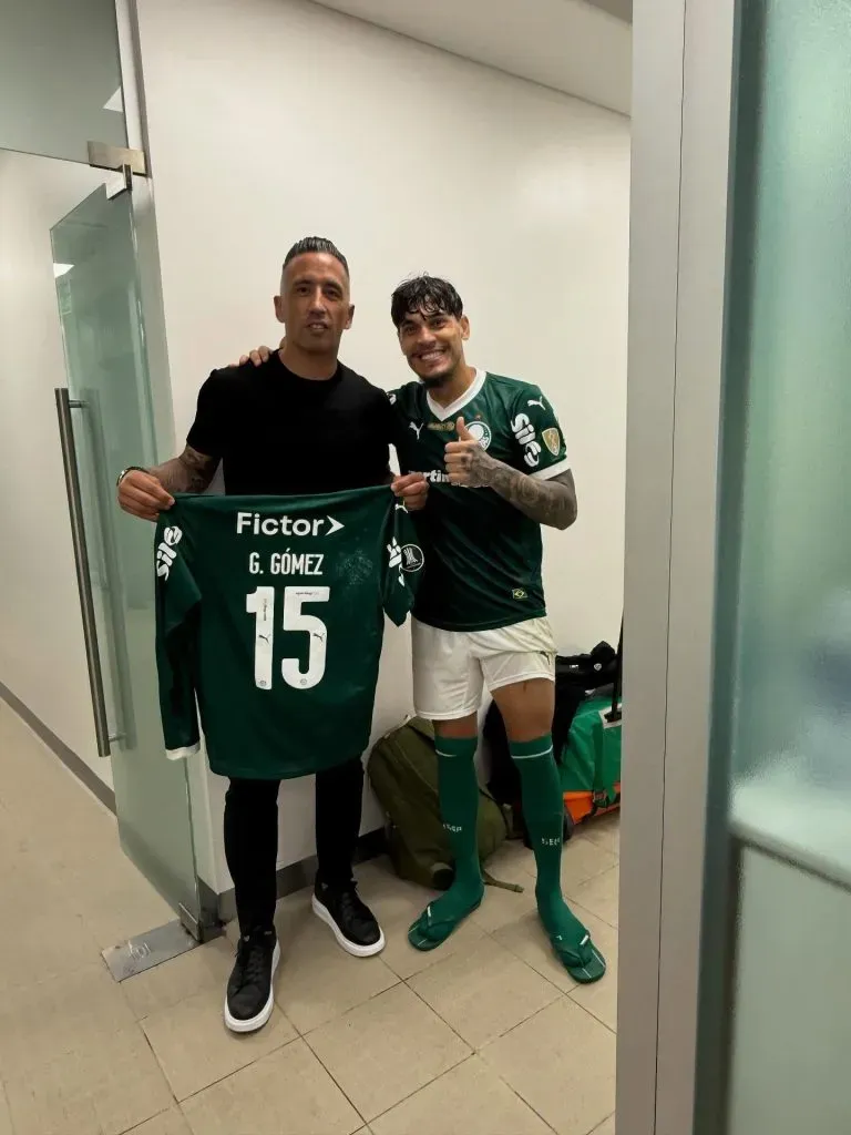 Gustavo Gómez, defensa goleador y referente de Palmeiras, celebró el triunfo ante River Plate junto a Lucas Barrios, ex goleador de Colo Colo. El argentino dio a conocer la postal tras el encuentro, con camiseta obsequiada del paraguayo.