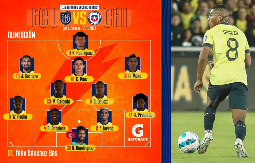 Todas esas referencias son para Carlos Gruezo, mediocampista de 28 años que milita en San José Earthquakes de Estados Unidos. Así lo reportó el periodista Stalin Cobena en El Canal del Fútbol. El futbolista que juega en la Major League Soccer cumplió la fecha de sanción en la igualdad sin goles frente a Venezuela.