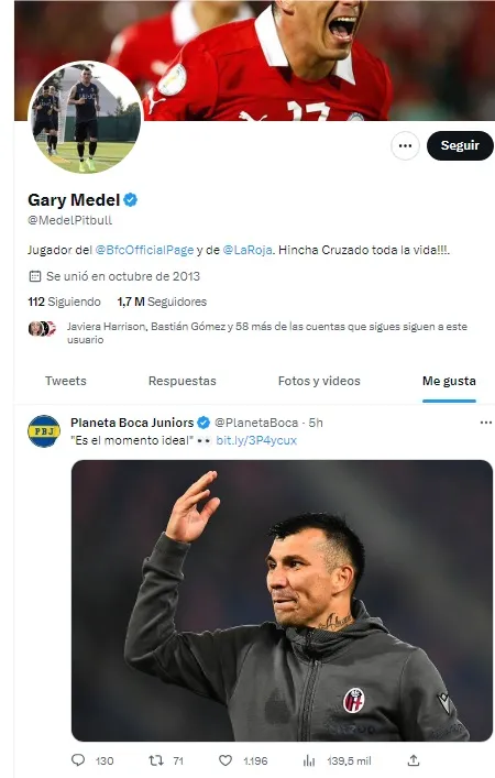 Oficialmente, Medel no ha informado cuáles son sus planes tras su cierre de etapa en Bologna. De hecho, esta es de las pocas demostraciones públicas que ha realizado en alguna de sus redes sociales, por lo que se puede dilucidar que efectivamente existe en su mente la chance de volver a vestir la camiseta xeneize.