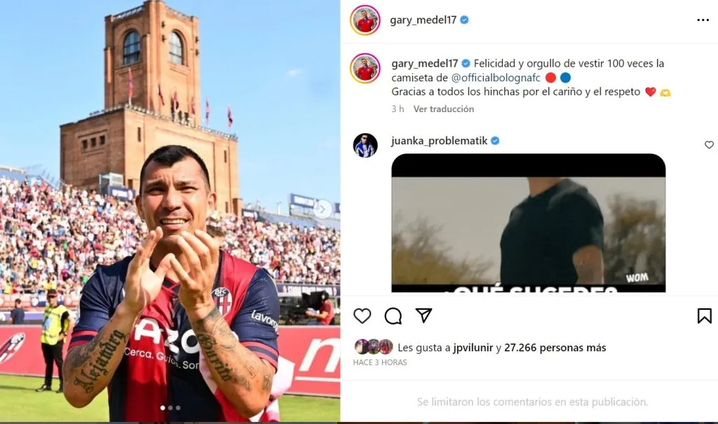 Un hito importante en su carrera festejó Gary Medel en Italia. Este fin de semana cumplió 100 partidos jugados con el Bologna, club al que arribó en 2019, siendo este el segundo club con el que alcanza más de un centenar de partidos en su carrera (el otro fue el Inter de Milan).