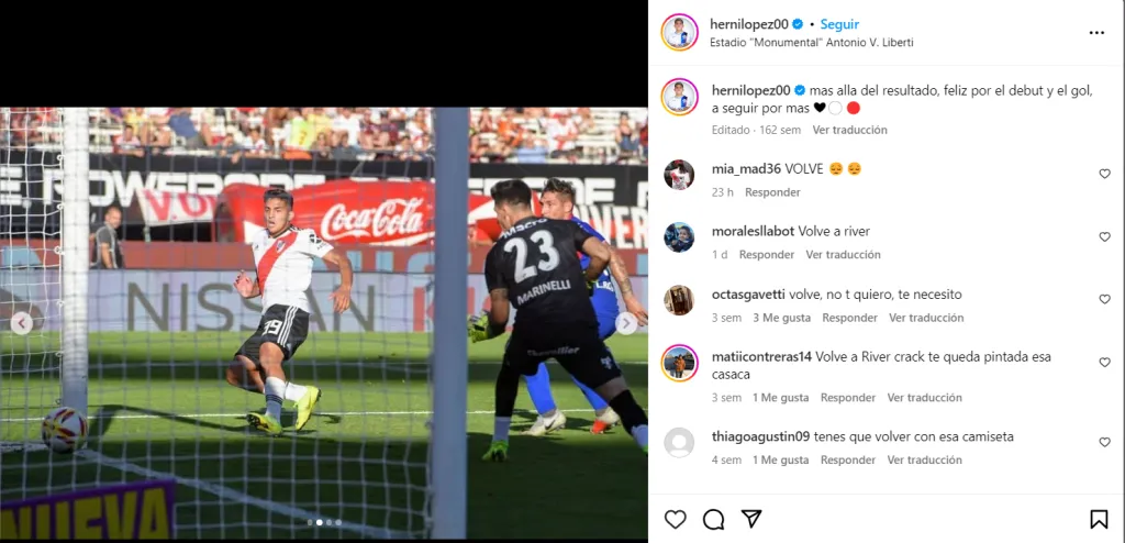 “No tener más partidos en River es una espina que me quedó, en algún momento existirá la posibilidad de volver a vestir esa camiseta. Soy fiel creyente de que todo pasa por algo y se dio así”, sentenció Hernán López Muñoz, quien también contó que fue compañero de generación con Julián Álvarez, hoy delantero del Manchester City. “Desde entonces se sabía que iba a ser crack”, describió.