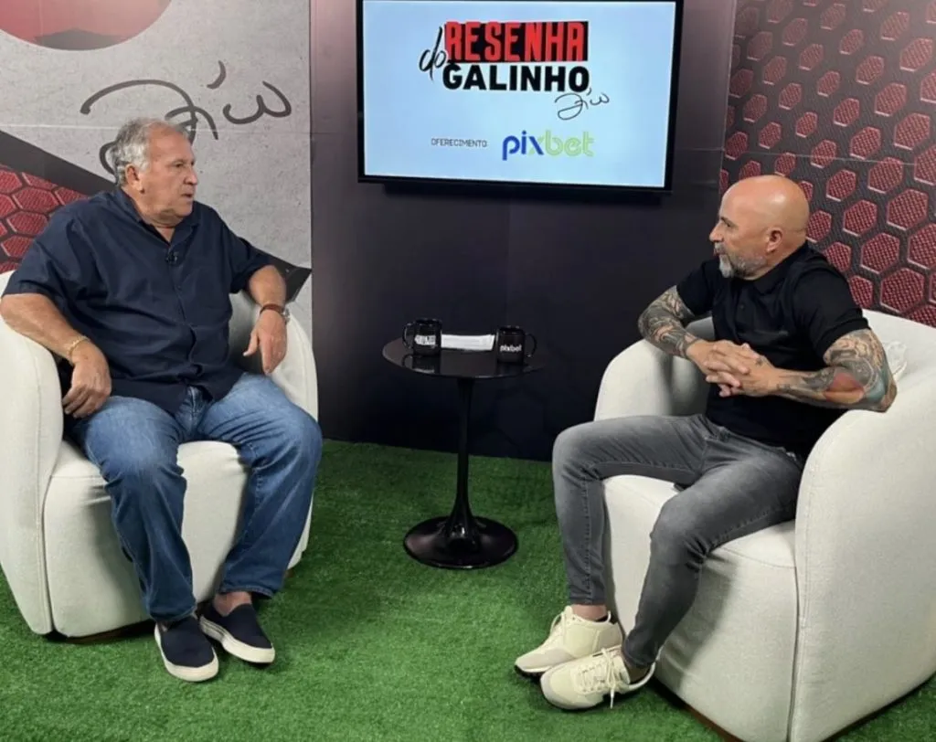 Jorge Sampaoli acudió al programa Resenha do Galinho, del que el mismo ex jugador apodado como El Pelé Blanco es anfitrión.